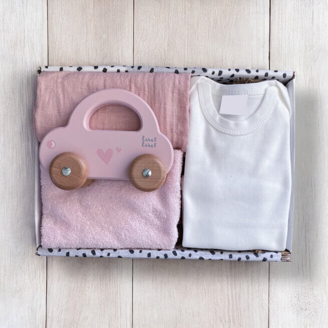 - Voor een speels accent bevat de set ook een houten speelgoedauto van Label Label. Deze auto is gemaakt van stevig hout, veilig voor kleine handjes en leuk om mee te spelen. Het natuurlijke design past perfect bij de rest van de set.