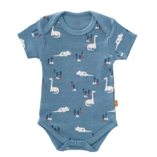 - Fresk Romper korte mouw – Dino print: Maat: 3–6 maanden | Materiaal: 100% biologisch katoen | Zachte kleuren met speelse dino-print | Drukknoopjes aan de onderkant voor makkelijk verschonen