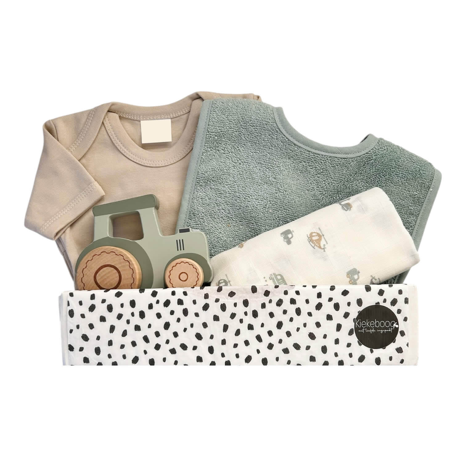 Elk kraamcadeau van Kiekebooo wordt met zorg samengesteld en stijlvol verpakt. Zo kun je het direct laten bezorgen bij de ouders of zelf geven.