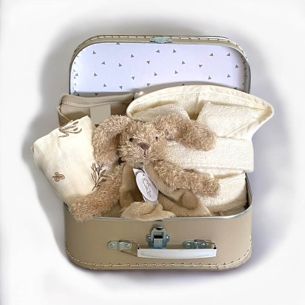 Met dit koffertje geef je een kraamcadeau met naam dat zowel mooi als praktisch is. Je bepaalt zelf de inhoud en maakt het persoonlijk met een naam of lieve boodschap. Het koffertje is stevig en herbruikbaar, ideaal om later herinneringen of babyspulletjes in te bewaren.