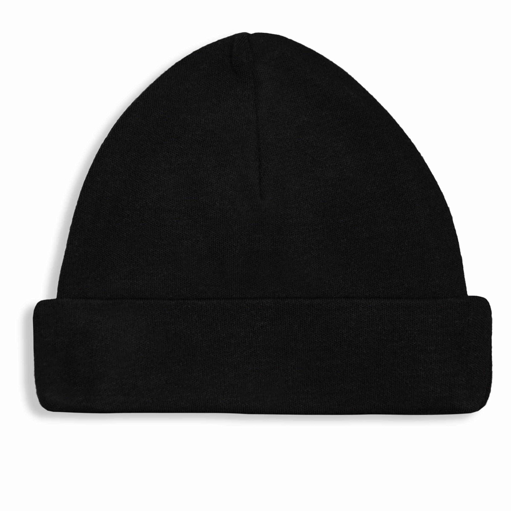Een schattig zwart babymutsje voor zijn mini-me. Zacht en stijlvol. Perfect voor de eerste papa-baby match.