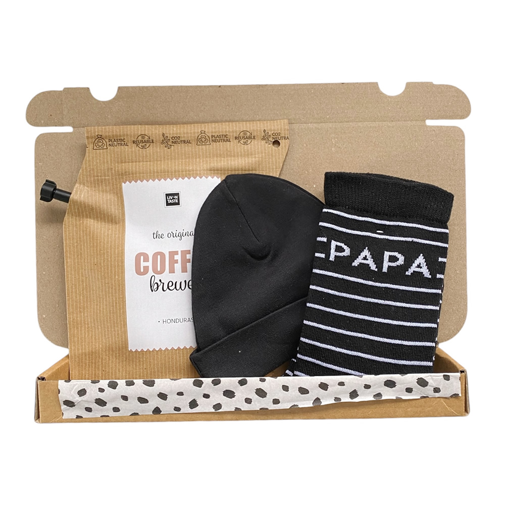 Voor de slapeloze nachten en vroege ochtenden. Deze handige coffeebrewer zorgt voor een krachtige kop verse koffie. Snel, sterk en smaakvol. - Sokken “Papa”